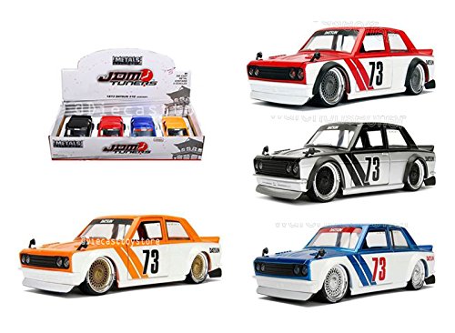 Jada ダイキャストトイ カー1: 24 ディスプレイメタル JDM Tuners 1973 Datsun 510 ワイドボディ 4個セット リテールボックスなし 98556-Dp1