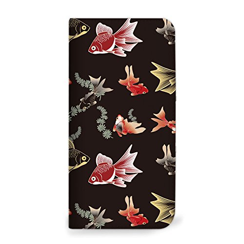 mitas HTC EVO 3D ISW12HT ケース 手帳型 ベルトなし 和柄 金魚 黒 (287)NB-0103-BK/ISW12HT