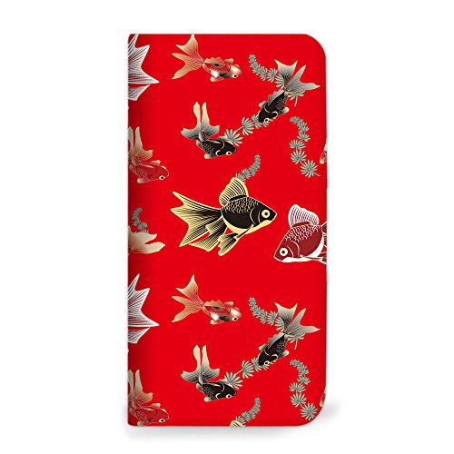 mitas Xperia XZ 601SO ケース 手帳型 ベルトなし 和柄 金魚 赤 (251)NB-0103-RD/601SO