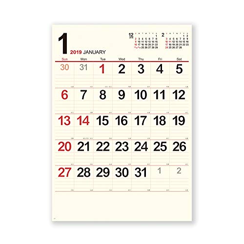新日本カレンダー 2019年 クリーム・メモ月表 カレンダー 壁掛け 大 NK199 (2019年 1月始まり)