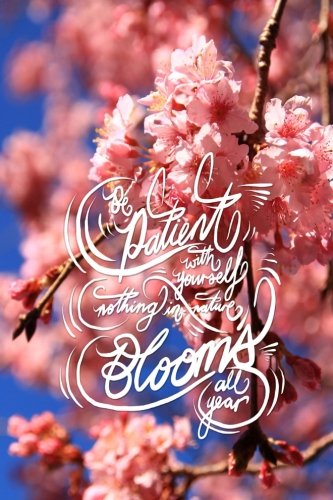Be Patient with Yourself, Nothing in Nature Blooms All Year: 6x9 Inch Lined Journal/Notebook - Bright Pink, Sakura, Cherry Blossom, Colorful, Japan, Calligraphy Art with Photography, Gift Idea