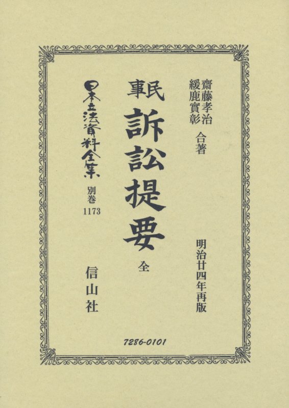 民事訴訟法提要 全 (日本立法資料全集別巻 1173)